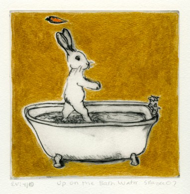 Above image: The Miracles of Hare-Boy: Up On the Bath Water, Sarah Hauser, 2007, Solarplate Etching with Metallic Paint, 7" x 7"